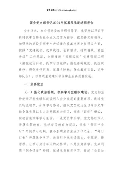 / 【七哥公文】2024年:国企党支部书记2024年抓基层党建述职报告+更多免费公文+VX:QiGeGongWen2024