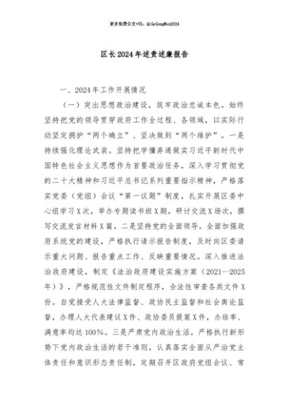 / 【七哥公文】2024年:区长2024年述责述廉报告+更多免费公文+VX:QiGeGongWen2024