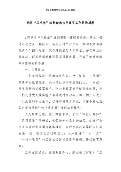 / 【七哥公文】2024年:党员“三培养”机制助推共同富裕工作经验材料+更多免费公文+VX:QiGeGongWen2024