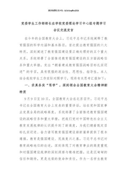【七哥公文】2024年:党委学生工作部部长在学校党委理论学习中心组专题学习会议交流发言+更多免费公文+VX:QiGeGongWen2024