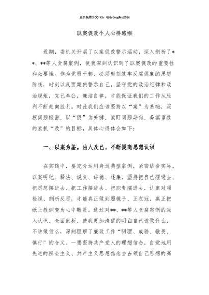 / 【七哥公文】2024年:以案促改个人心得感悟+更多免费公文+VX:QiGeGongWen2024
