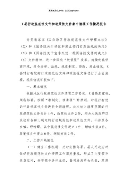 【七哥公文】2024年:X县行政规范性文件和政策性文件集中清理工作情况报告+更多免费公文+VX:QiGeGongWen2024