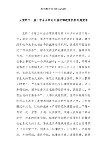 / 【七哥公文】2024年:从党的二十届三中全会学习开展纪律教育机制专题党课+更多免费公文+VX:QiGeGongWen2024