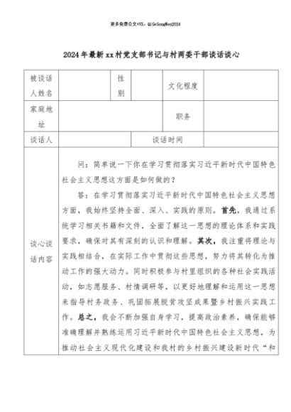 【七哥公文】2024年:2024年最新xx村党支部书记与村两委干部谈话谈心+更多免费公文+VX:QiGeGongWen2024