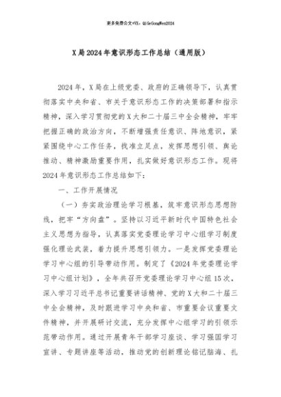/ 【七哥公文】2024年:X局2024年意识形态工作总结(通用版)+更多免费公文+VX:QiGeGongWen2024