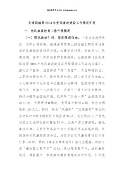 / 【七哥公文】2024年:交通运输局2024年党风廉政建设工作情况汇报+更多免费公文+VX:QiGeGongWen2024