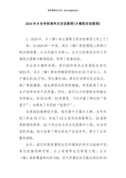 【七哥公文】2024年:2024年乡村考核清单及访谈提纲(乡镇级访谈提纲)+更多免费公文+VX:QiGeGongWen2024
