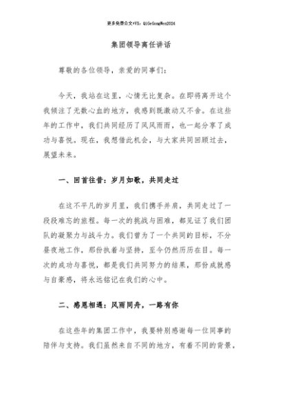 / 【七哥公文】2024年:集团领导离任讲话+更多免费公文+VX:QiGeGongWen2024