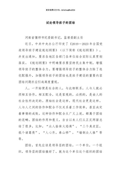 【七哥公文】2024年:试论领导班子的团结+更多免费公文+VX:QiGeGongWen2024
