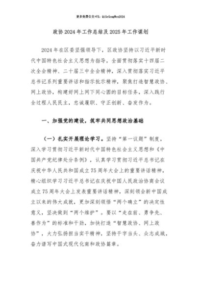 / 【七哥公文】2024年:政协2024年工作总结及2025年工作谋划+更多免费公文+VX:QiGeGongWen2024