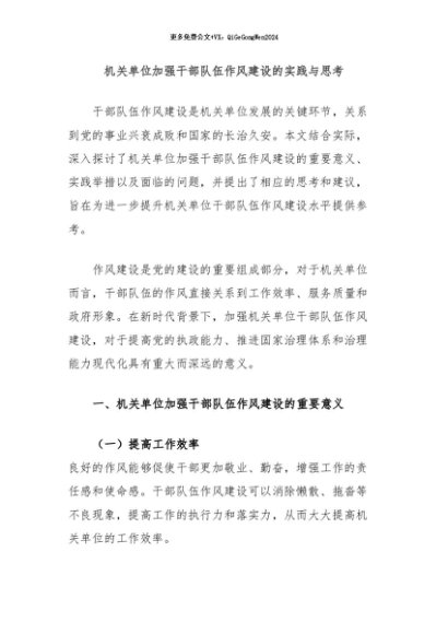 / 【七哥公文】2024年:机关单位加强干部队伍作风建设的实践与思考+更多免费公文+VX:QiGeGongWen2024