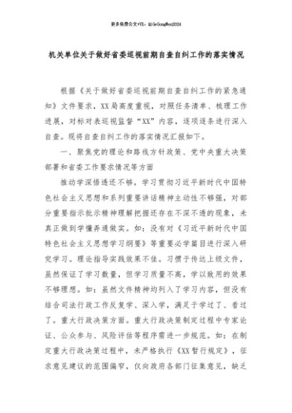 【七哥公文】2024年:机关单位关于做好省委巡视前期自查自纠工作的落实情况+更多免费公文+VX:QiGeGongWen2024