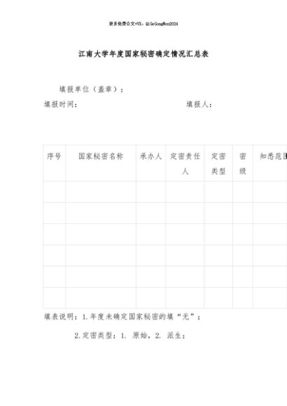 / 【七哥公文】2024年:江南大学年度国家秘密确定情况汇总表+更多免费公文+VX:QiGeGongWen2024