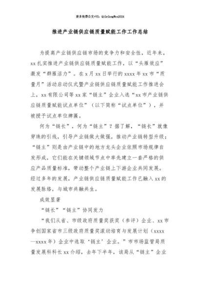 / 【七哥公文】2024年:推进产业链供应链质量赋能工作工作总结+更多免费公文+VX:QiGeGongWen2024