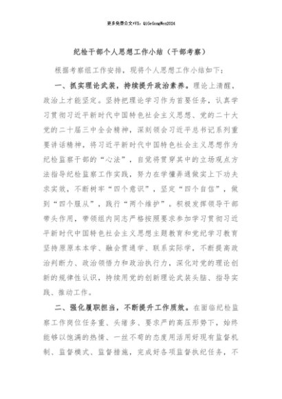 / 【七哥公文】2024年:纪检干部个人思想工作小结(干部考察)+更多免费公文+VX:QiGeGongWen2024