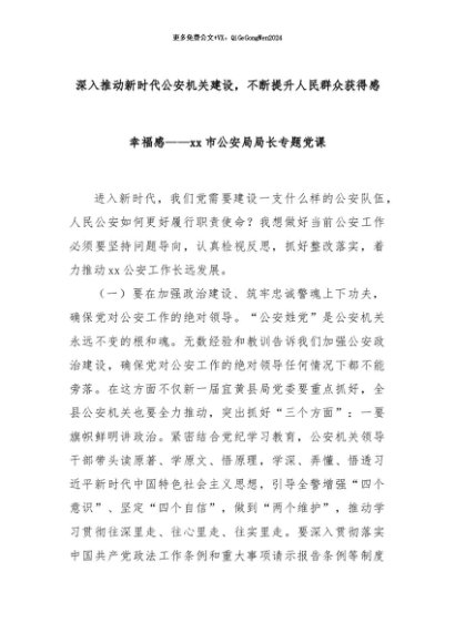 【七哥公文】2024年:深入推动新时代公安机关建设,不断提升人民群众获得感幸福感——xx市公安局局长专题党课+更多免费公文+VX:QiGeGongWen2024