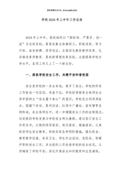 / 【七哥公文】2024年:学校2024年上半年工作总结+更多免费公文+VX:QiGeGongWen2024