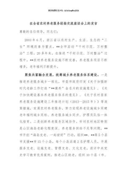 / 【七哥公文】2024年:在全省农村养老服务经验交流座谈会上的发言+更多免费公文+VX:QiGeGongWen2024