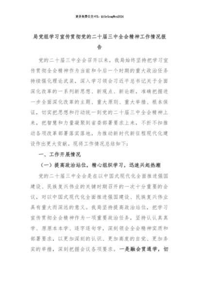 【七哥公文】2024年:局党组学习宣传贯彻党的二十届三中全会精神工作情况报告+更多免费公文+VX:QiGeGongWen2024