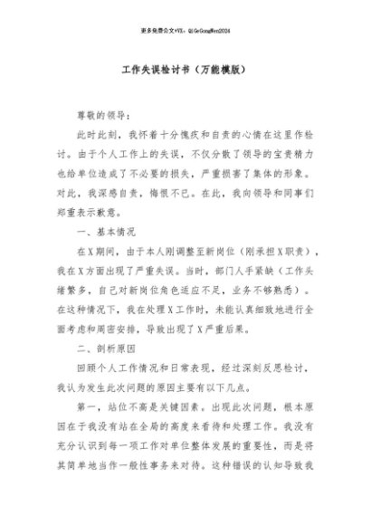 / 【七哥公文】2024年:工作失误检讨书(万能模版)+更多免费公文+VX:QiGeGongWen2024