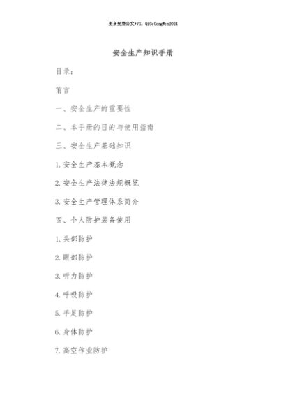 【七哥公文】2024年:安全生产知识手册+更多免费公文+VX:QiGeGongWen2024