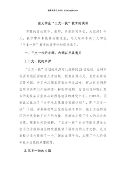 / 【七哥公文】2024年:在大学生“三支一扶”教育的演讲+更多免费公文+VX:QiGeGongWen2024