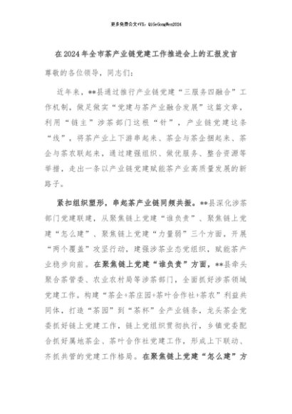 【七哥公文】2024年:在2024年全市茶产业链党建工作推进会上的汇报发言+更多免费公文+VX:QiGeGongWen2024
