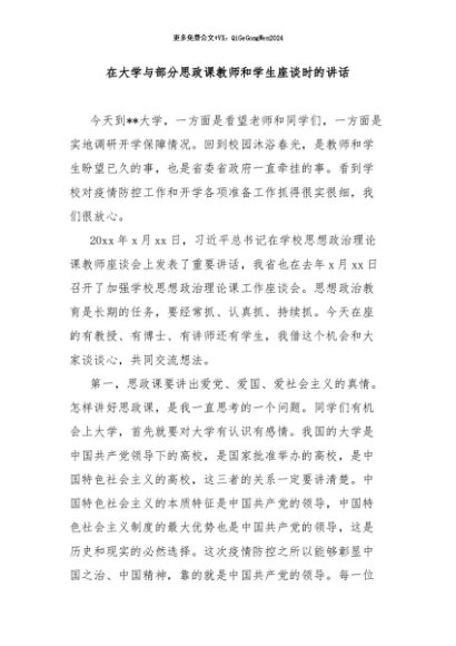 / 【七哥公文】2024年:在大学与部分思政课教师和学生座谈时的讲话+更多免费公文+VX:QiGeGongWen2024