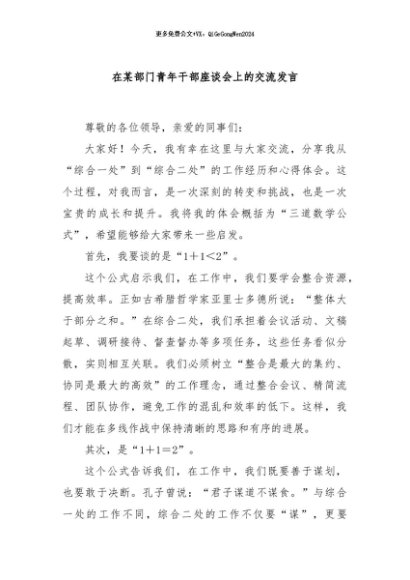 / 【七哥公文】2024年:在某部门青年干部座谈会上的交流发言+更多免费公文+VX:QiGeGongWen2024