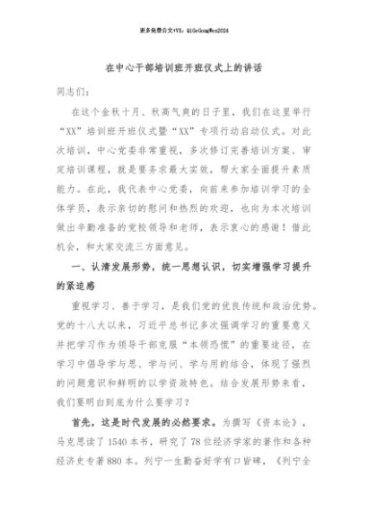 / 【七哥公文】2024年:在中心干部培训班开班仪式上的讲话+更多免费公文+VX:QiGeGongWen2024