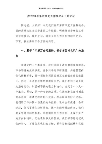 / 【七哥公文】2024年:在2024年第四季度工作推进会上的讲话+更多免费公文+VX:QiGeGongWen2024