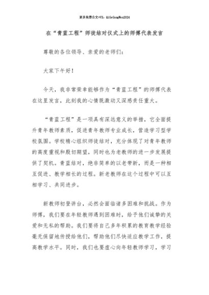 / 【七哥公文】2024年:在“青蓝工程”师徒结对仪式上的师傅代表发言+更多免费公文+VX:QiGeGongWen2024