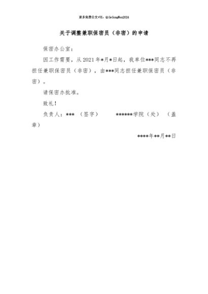 / 【七哥公文】2024年:关于调整兼职保密员(非密)的申请+更多免费公文+VX:QiGeGongWen2024