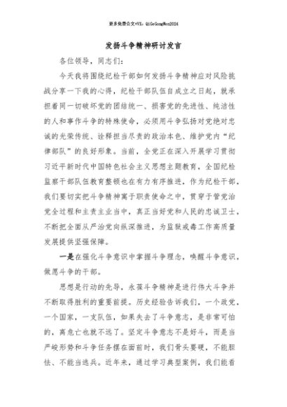 / 【七哥公文】2024年:发扬斗争精神研讨发言+更多免费公文+VX:QiGeGongWen2024