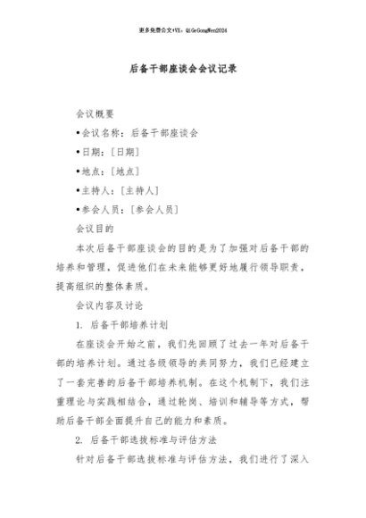 / 【七哥公文】2024年:后备干部座谈会会议记录+更多免费公文+VX:QiGeGongWen2024