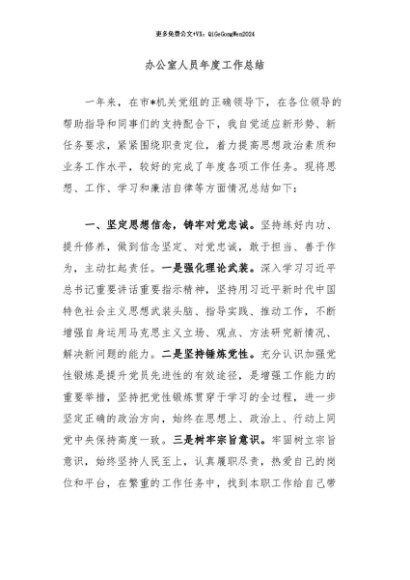/ 【七哥公文】2024年:办公室人员年度工作总结+更多免费公文+VX:QiGeGongWen2024