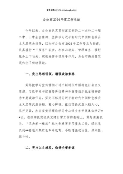 / 【七哥公文】2024年:办公室2024年度工作总结+更多免费公文+VX:QiGeGongWen2024