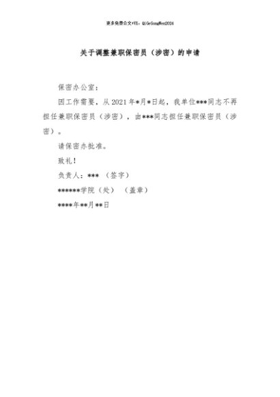 / 【七哥公文】2024年:关于调整兼职保密员(涉密)的申请+更多免费公文+VX:QiGeGongWen2024