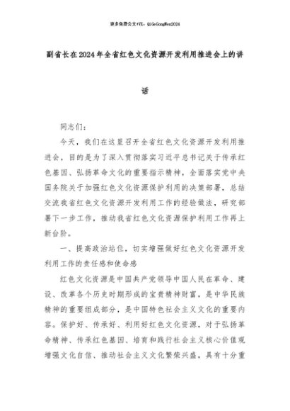 【七哥公文】2024年:副省长在2024年全省红色文化资源开发利用推进会上的讲话+更多免费公文+VX:QiGeGongWen2024