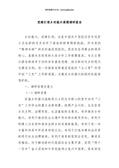 / 【七哥公文】2024年:党建引领乡村振兴课题调研报告+更多免费公文+VX:QiGeGongWen2024