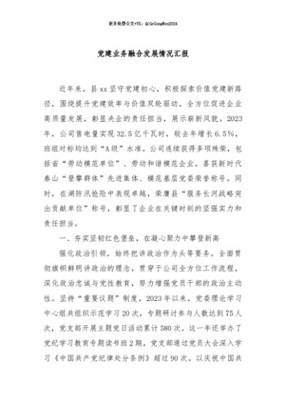 / 【七哥公文】2024年:党建业务融合发展情况汇报+更多免费公文+VX:QiGeGongWen2024