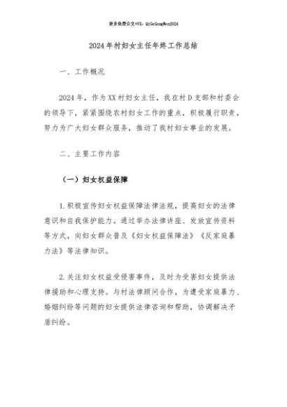 / 【七哥公文】2024年:2024年村妇女主任年终工作总结+更多免费公文+VX:QiGeGongWen2024