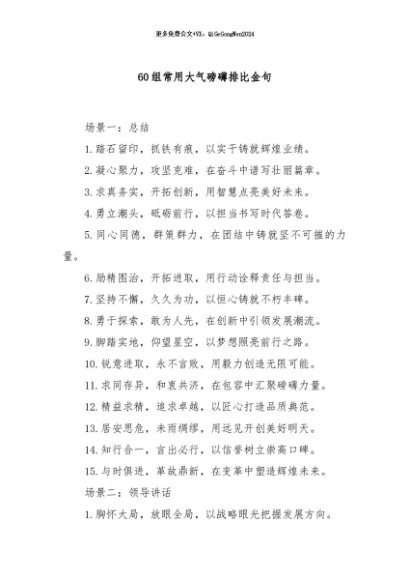 / 【七哥公文】2024年:60组常用大气磅礴排比金句+更多免费公文+VX:QiGeGongWen2024