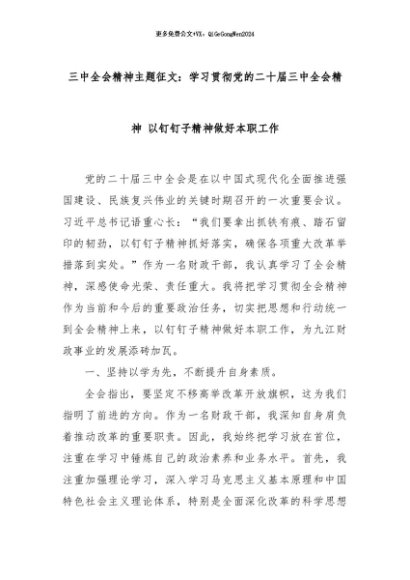 【七哥公文】2024年:三中全会精神主题征文:学习贯彻党的二十届三中全会精神 以钉钉子精神做好本职工作+更多免费公文+VX:QiGeGongWen2024