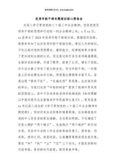 【七哥公文】2024年:优秀年轻干部专题培训班心得体会+更多免费公文+VX:QiGeGongWen2024