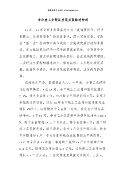 【七哥公文】2024年:市年度工业经济发展成效综述材料+更多免费公文+VX:QiGeGongWen2024