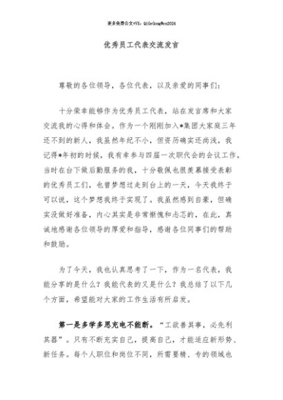 / 【七哥公文】2024年:优秀员工代表交流发言+更多免费公文+VX:QiGeGongWen2024