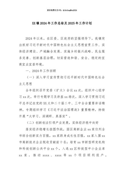 / 【七哥公文】2024年:XX镇2024年工作总结及2025年工作计划+更多免费公文+VX:QiGeGongWen2024