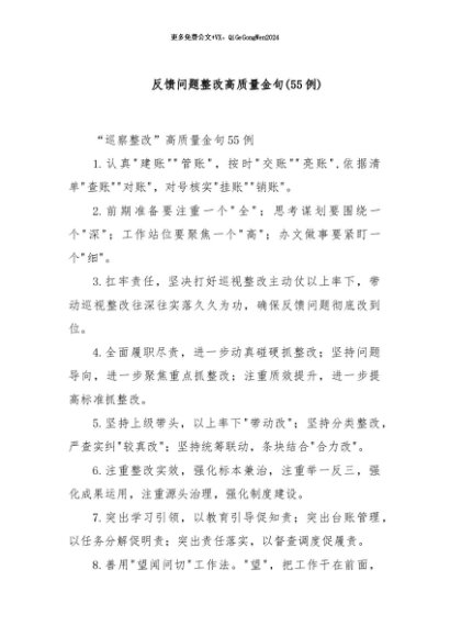 / 【七哥公文】2024年:(55例)反馈问题整改高质量金句+更多免费公文+VX:QiGeGongWen2024