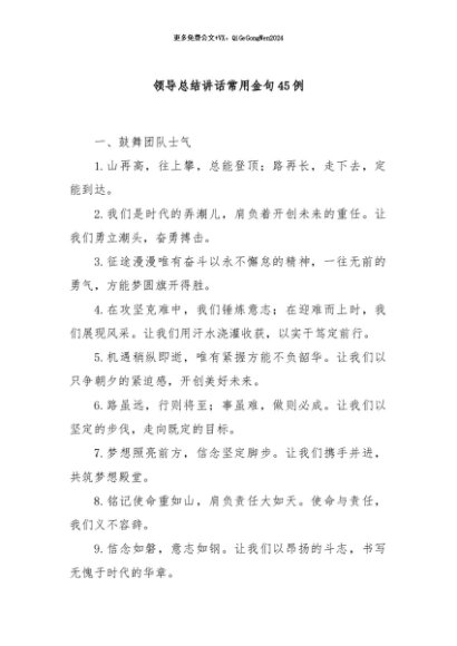 / 【七哥公文】2024年:(45例)领导总结讲话常用金句+更多免费公文+VX:QiGeGongWen2024